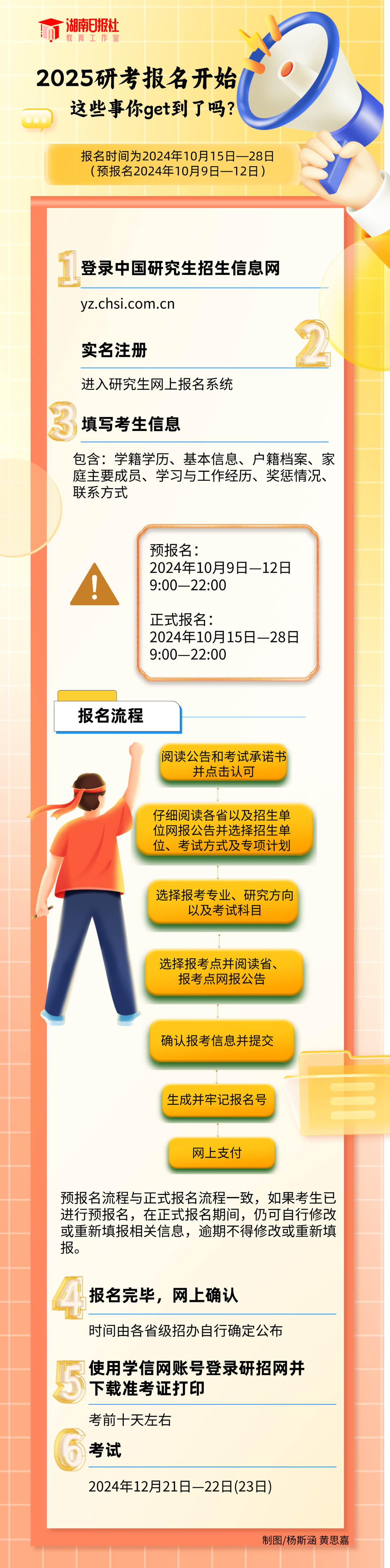 湖南日报10月9日讯(全媒体记者 杨斯涵 通讯员 张祝缘 黄思嘉)2025年研考生注意了!网上预报名今日启动,流程如何?又有哪些注意事项?记者进行了梳理。