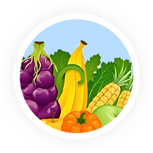 新鲜果蔬,如针叶樱桃、柑橘类水果、草莓、西红柿等。
