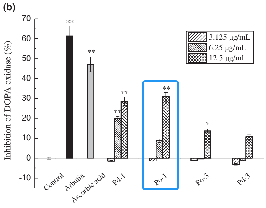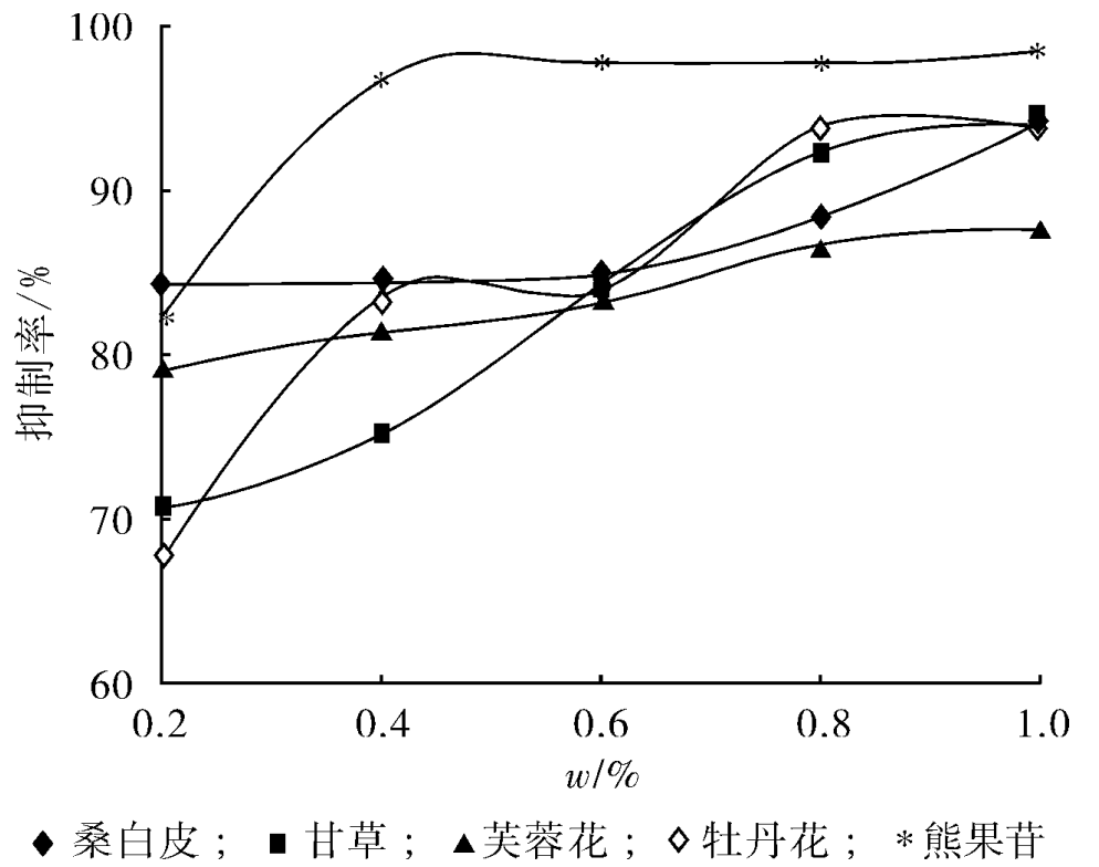 1%提取物及熊果苷对酪氨酸酶抑制率