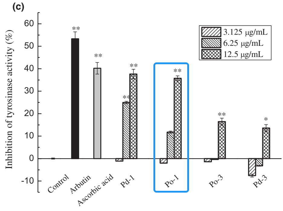 此外,安石榴苷和鞣花酸还表现出强大的抗氧化能力,能够清除DPPH自由基、减弱酪氨酸氧化,进而抑制酪氨酸酶的活性。