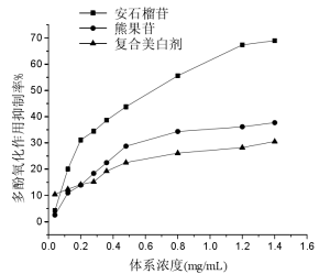 不同含量提取物及熊果苷酪氨酸酶抑制率