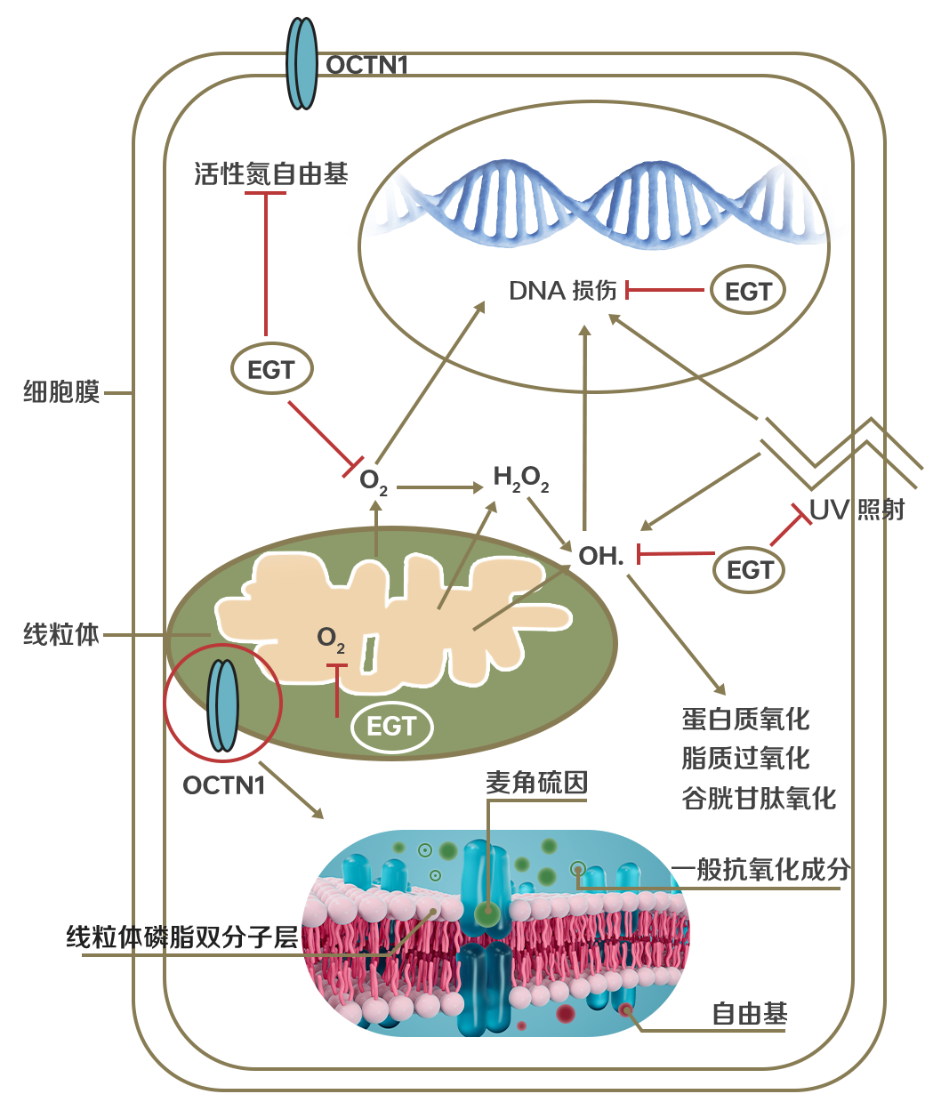 麦角硫因作为能进入线粒体和细胞核的长效天然抗氧化剂,可以抑制DNA损伤,有效防护紫外损伤,发挥保护细胞、防止光老化的作用。
