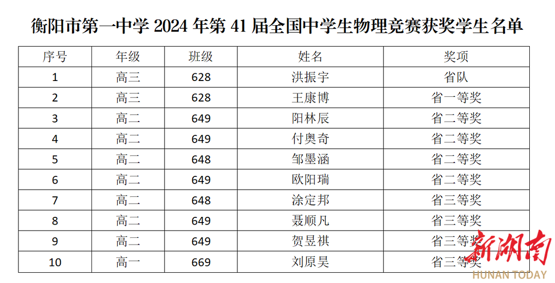 1人入选省队,2人获一等奖!衡阳市一中物理奥赛再创佳绩