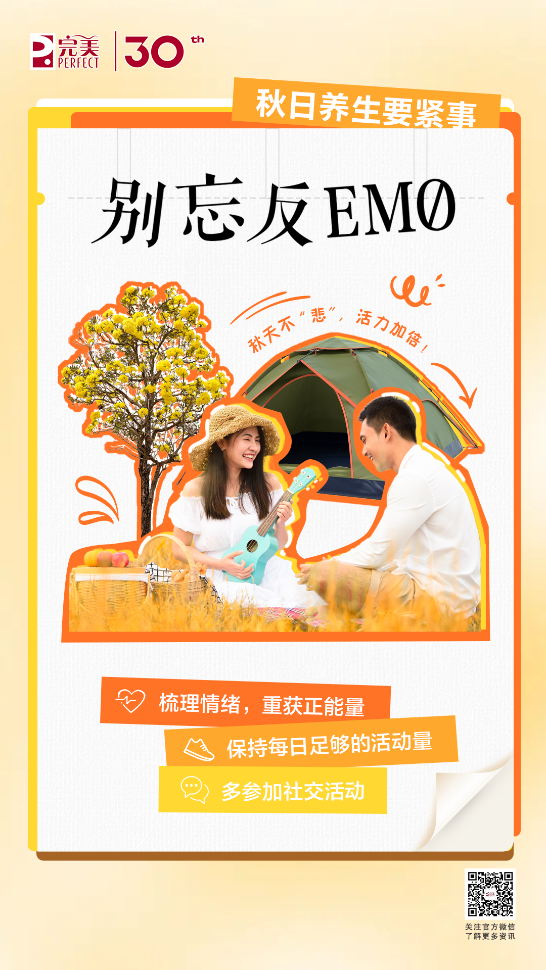 过度的情绪波动会影响身心健康,因此,秋季养生,也别忘记调节情绪,别让“emo”情绪影响这个收获的季节。