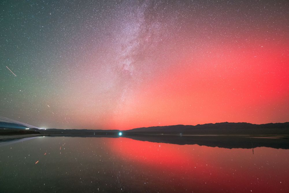 2024年10月11日,在伊吾幻彩湖拍摄的极光和银河。杨瑞东 摄