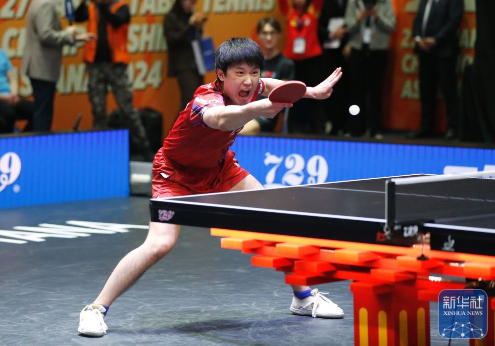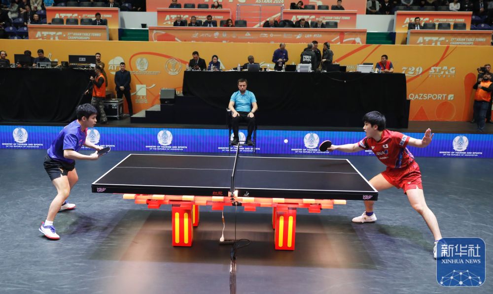 10月13日,在哈萨克斯坦阿斯塔纳举行的2024年乒乓球亚锦赛男单决赛中,日本选手张本智和3比1战胜中国选手林诗栋,夺得冠军。新华社发(奥斯帕诺夫摄)