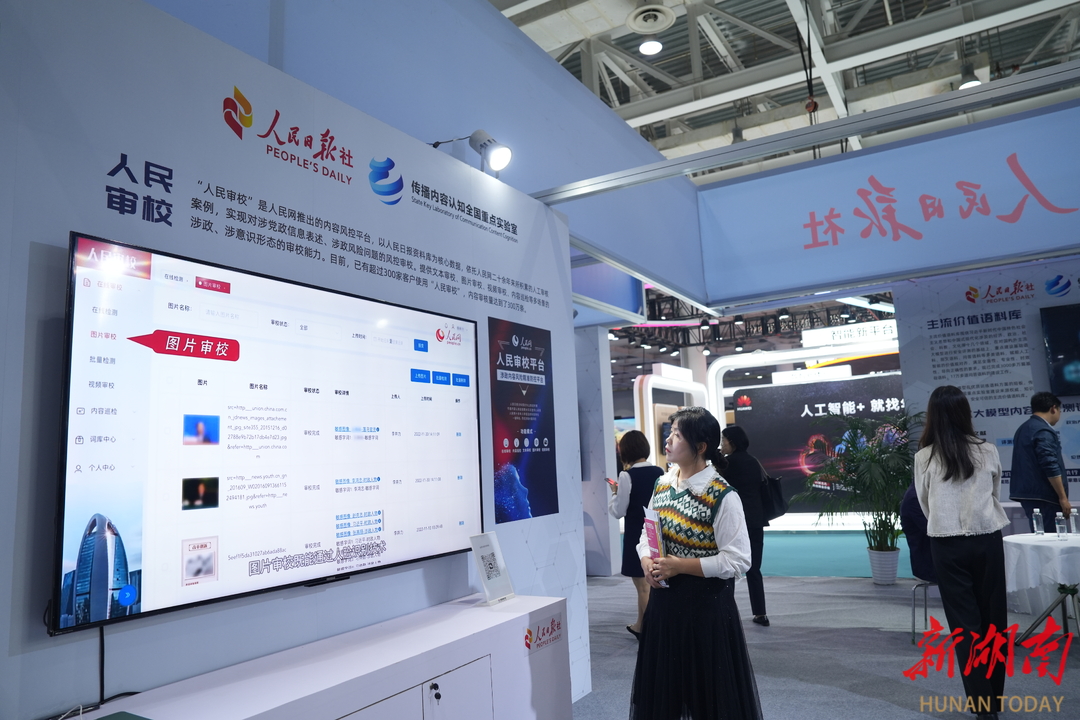 在人民日报传播内容认知全国重点实验室展位,不少媒体人围在“人民审校”的展示屏前,盯着这款内容风控平台将稿件中的错误一个个迅速地“揪”出来。
