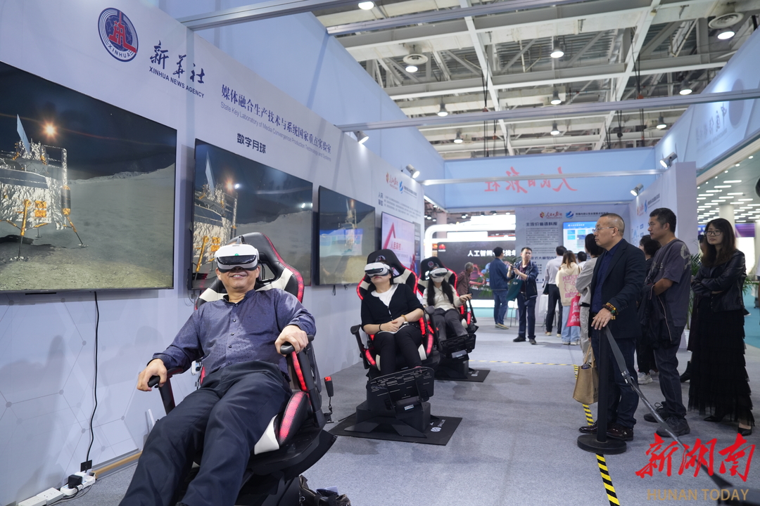 “这种玩法也可以用到张家界的天门山呢,就叫‘飞跃天门’。”在新华社媒体融合生产技术与系统国家重点实验室展位的“数字月球”前,一位来自张家界的媒体代表说。一旁,他的同事已戴好VR眼镜,坐上“月球车”,感受着月球低重力环境下驾驶月球车的颠簸感。