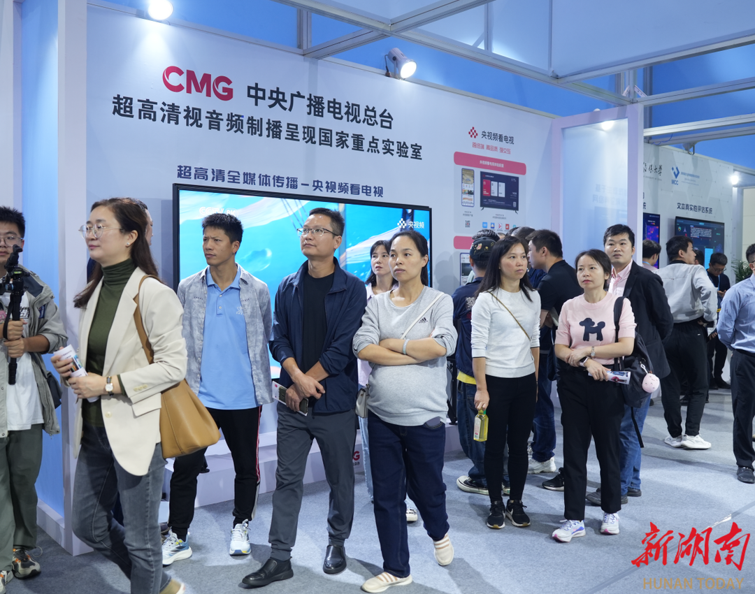 10月15日,在湖南国际会展中心举行的2024新媒体技术展上,学习、交流、打卡的参观者络绎不绝。4家媒体技术国家重点实验室带来的一大批前瞻性、创新性技术集中亮相。