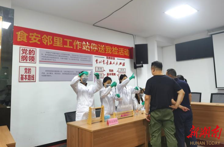 活动现场,该校湘菜学院副院长杨潇和食品教研室主任彭颖带领的7名食品检测专业学生身着统一服装,热情接待每一位送检的居民。他们耐心地向居民解释检测流程,并仔细记录检测结果。