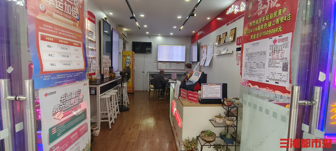 三湘都市报10月20日讯(全媒体记者 胡锐 高煜棋 全媒体见习记者 熊韵婧)走近位于浏阳市金沙中路1巷8号的43017193福潮店,门头上“中国福利彩票”招牌、站点两侧五颜六色的LED字灯格外吸睛。炫目的外观设计,让该站点成为周边一众店铺中最亮眼的存在。