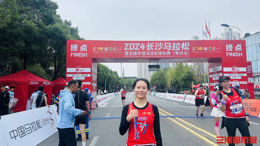 同样是第一次参加长马,长沙跑友黄女士随着“关门兔”,在关门时间前两分钟,抵达半马终点。“今天感觉天气很好,氛围也很足。赛道两边有路过的观众大喊加油,赛道上的跑团也会相互鼓劲。”黄女士向三湘都市报记者特别开心能完成预期目标,“不知不觉就跑到了终点,明年我还要报名参赛。”