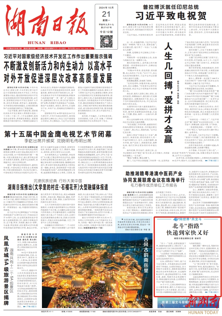 “从消费者下单到接收包裹,北斗全程服务。”湘邮科技物联网生态运营总监徐海军表示。