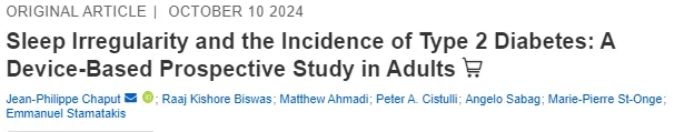2024年10月10日,《糖尿病护理》杂志上刊发了一项研究发现,睡眠规律性与2型糖尿病发病率之间的关联。研究显示:睡眠不规律会导致糖尿病风险增加,即使睡眠时长达到指南推荐8小时的人也同样会增加糖尿病风险。