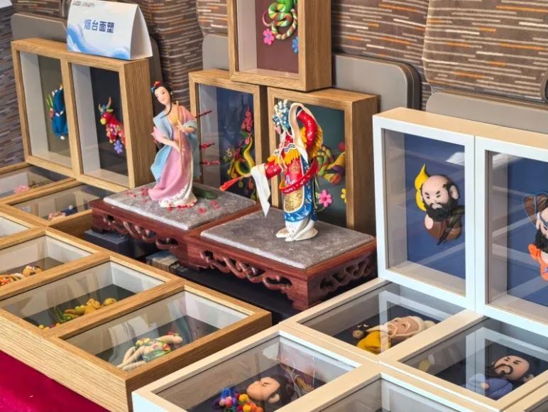 10时整,5号车厢内的非遗产品展演火爆进行,烟台绒绣、剪纸、葫芦烙画、民生印花布偶玩具、胶东泥塑、烟台面塑、胶东手作香、京剧脸谱绘制8个特色项目将车厢装点成非物质文化遗产“大集”,非遗传承人各显神通,引得旅客欢呼称赞。