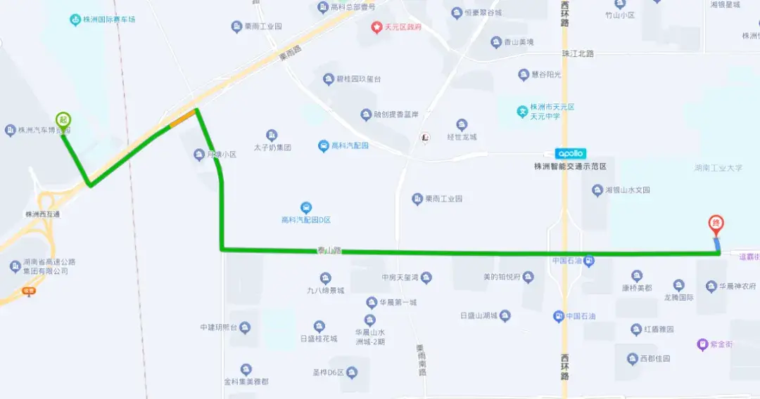 途经道路:动力谷大道—株洲大道—湘芸路—泰山路—湖南工业大学