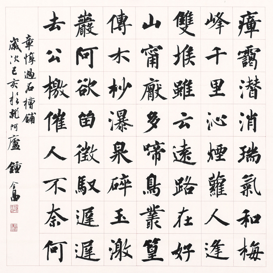 全昌从小就喜爱书法和接触书法,进益阳师专之后,严格的写字训练更是为他打下了坚实的基础,尤其是在正书方面,天生的悟性让他学谁像谁,我认识他时,他已经写得一手漂亮的唐楷,颜楷、柳楷,尤其是欧楷写得不错,还有一定的行书基础,石鼓文也写得像模像样。在2001年举行的第二届“华诞杯”全国规范化汉字书写大赛中,他还获得了大专组的一等奖。