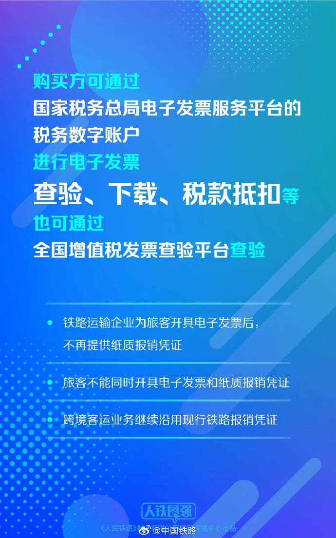 答:采用全面数字化的电子发票后,旅客不再需要到火车站、车票代售点、自助机上打印纸质报销凭证。可直接登录本人铁路12306账户申请开具电子发票。