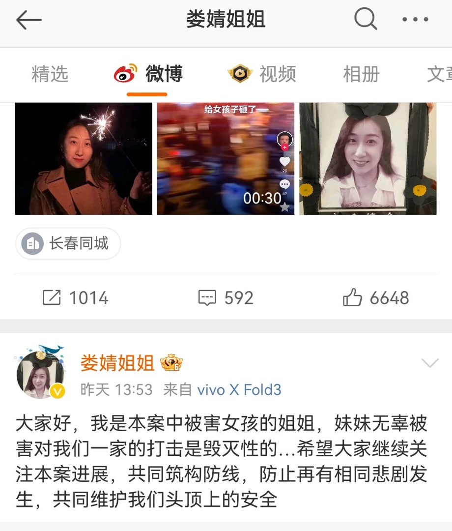10月21日上午,在长春中级人民法院听到最高法对周某“核准死刑、立即执行”的消息时,小娄姐姐眼泪哗哗流了下来。为了避免再刺激到年近70岁的父母亲,这次她是瞒着老人到长春的,“结果在我们的意料中,但妹妹再也回不来了。”