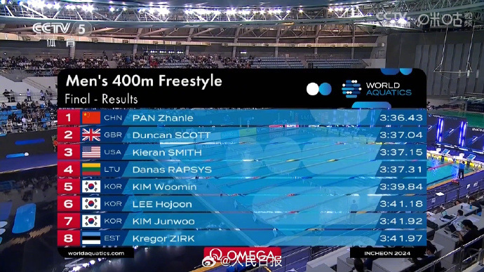 刚刚,2024游泳世界杯仁川站男子400米自由泳决赛,潘展乐以3分36秒43的成绩夺得金牌,恭喜!