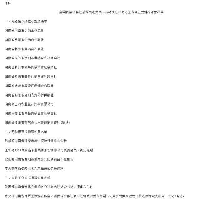 湖南拟推荐他们参评全国供销合作社系统先进集体、劳动模范和先进工作者!