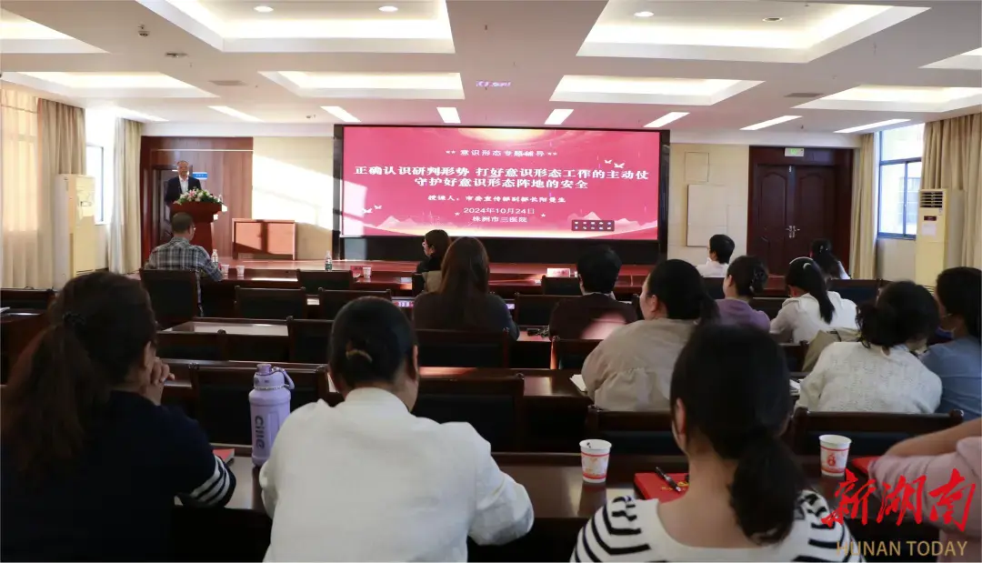 湖南日报·新湖南客户端10月25日讯(通讯员 李鹏)10月24日,株洲市三医院开展意识形态专题讲座。株洲市委宣传部副部长阳曼生应邀授课。市三医院党委书记陈湘清主持讲座,医院党委领导班子、党员、中层干部及不值班的工作人员共计300余人参加讲座。