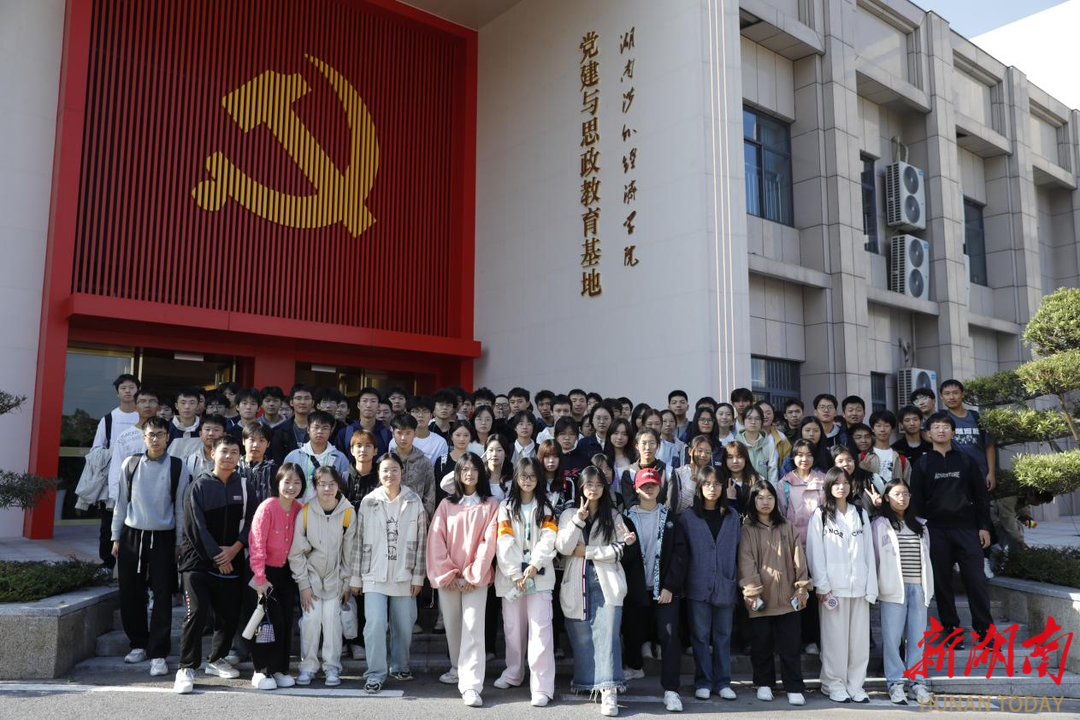 新湖南客户端10月25日讯(通讯员 刘倩 康嘉源 车路佳)为传承红色基因,进一步激发青年学生的爱国热情,10月24日上午,湖南第一师范学院(简称“湖南一师”)马克思主义学院教师向婷,组织该校人工智能学院200余名学生赴湖南涉外经济学院(简称“湖南涉外”)党建与思政教育基地参观学习。