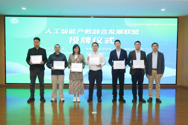 论坛上为“智能制造产教融合发展联盟”“丝路电商产教融合发展联盟”“人工智能产教融合发展联盟”“新能源汽车产教融合发展联盟”和“上海马桥人工智能创新试验区产教联合体”理事单位授牌,为10家合作企业的技术专家颁发“产业导师”聘书,为6家合作开设订单班的企业颁发了“校企合作卓越贡献奖”。