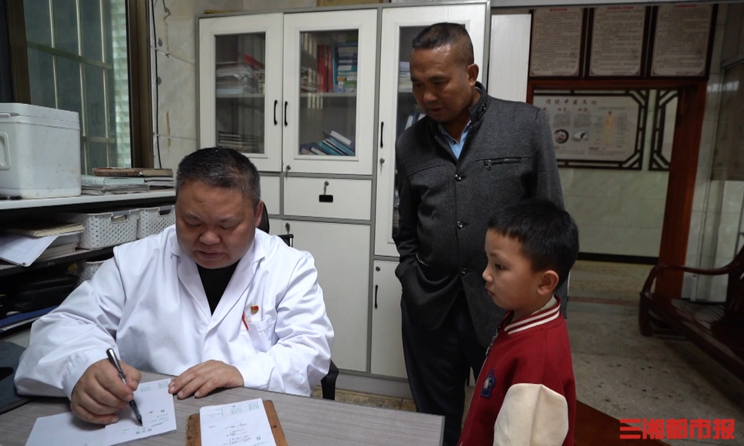 “前不久,我受邀回母校湘南学院参加开学典礼,疏理了自己从医的心得,发现一直在坚守的,还是‘学医先学德’的初心。”10月27日,在湖南郴州市宜章县天塘镇天塘村卫生室,谭鉴军正在坐诊,为前来就医的病患诊脉开药。在获评2023‘感动湖南’年度十佳人物后,谭鉴军仍心系村里的疾苦老百姓。