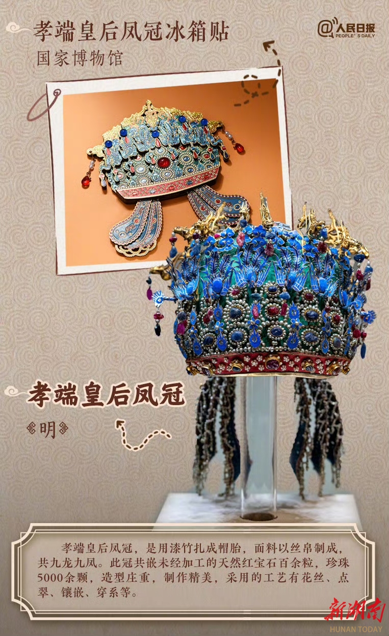 (明孝端皇后凤冠和其文创产品。图片来源:人民日报)