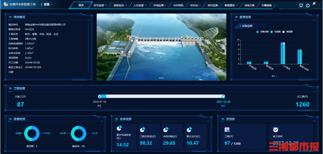 三湘都市报·新湖南客户端11月1日讯(全媒体记者 李致远 通讯员 王琳 徐丽 刘苏)11月1日,记者从湖南省水利厅获悉,在益阳市安化县金塘冲水库项目现场,项目建设正火力全开。“金塘冲水库搭建了基于BIM模型的智慧建管、智慧工地、三维可视化系统,全面提升项目参建单位对工程建设的精准感知、精确分析、精细管理水平。”项目负责人黄跃群介绍,现在只需要1个人1台电脑,就可以通过项目信息化系统对整个项目进行在线管理与监督,为43个月按期保质完成建设目标拉满“进度条”。