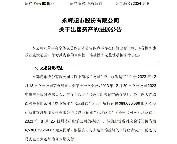 永辉超市10月10日晚间公告,截至公告披露日,公司尚未收到大连御锦第四期3亿元股权转让款,已向大连御锦、王健林、孙喜双、大连一方集团有限公司等发函,并将向上海国际经济贸易仲裁委员会提起仲裁,追究上述责任方的法律责任。