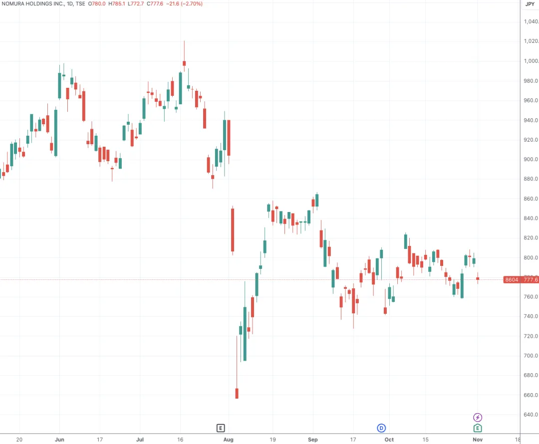 纵使财报亮眼,野村控股在丑闻和外围市场动荡的背景下周五收跌2.7%,基准东证指数下跌1.90%。