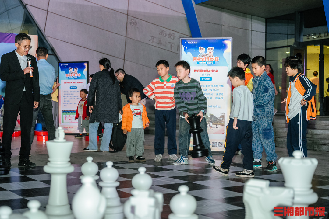 “棋”妙夜,长沙图书馆“变身”巨大棋盘