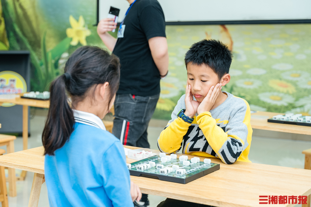国际象棋、象棋、围棋、军旗、跳棋、孔明棋、甲骨文飞行棋、跳房子和科普投棋等13个各具特色的项目,引得小读者们踊跃展示自我、挑战自我,纷纷化身“对弈者”,“驰骋”棋盘。