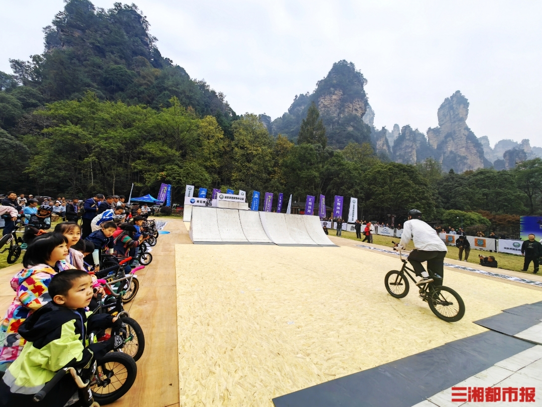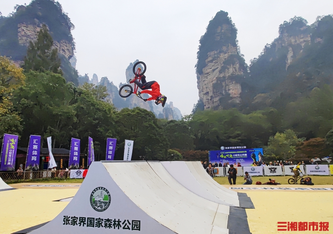 三湘都市报·新湖南客户端11月3日讯(全媒体记者 曾冠霖 通讯员 邓道理)11月2日上午,首届张家界黄石寨峰林对决小轮车公开赛在湖南省张家界国家森林公园开赛,来自中国、俄罗斯两国的60名小轮车手在张家界地貌峰林奇景中共同为到访游客带来了一场视觉与心跳的双重盛宴。