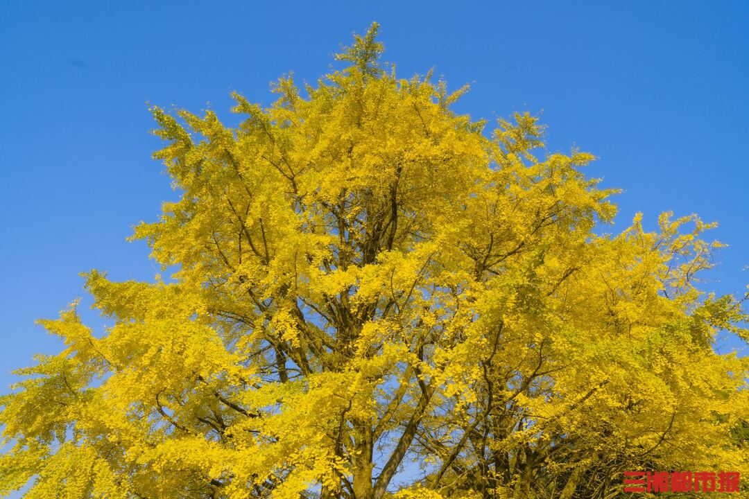 天乐堂800岁“银杏三姊妹”满树金黄 曾冠霖 摄