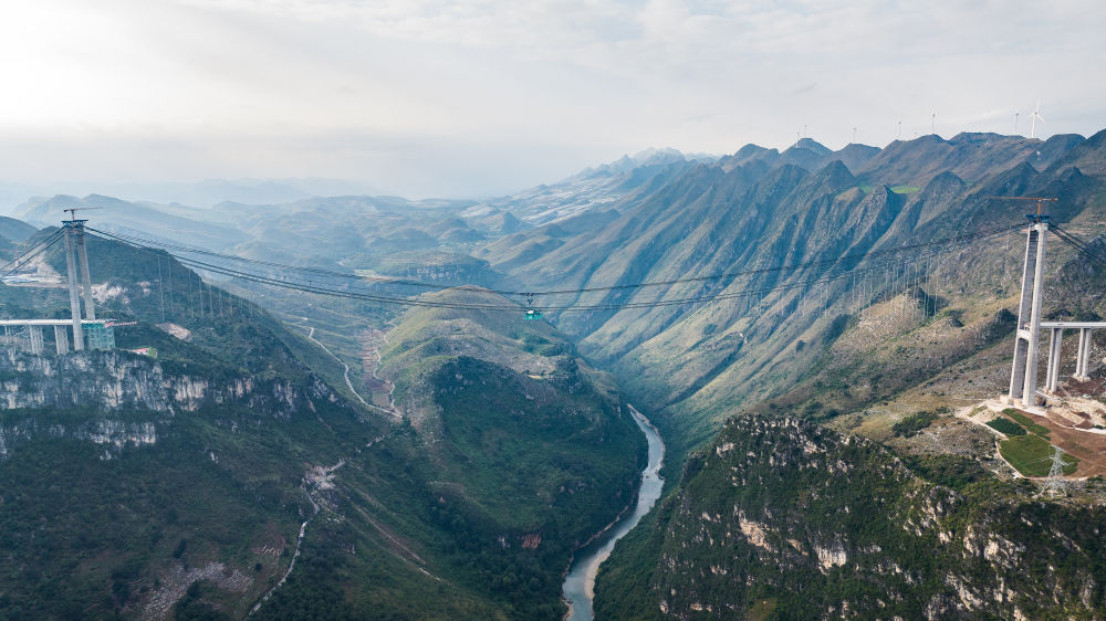 2022年开工建设的花江峡谷大桥,因跨越被誉为“地球裂缝”的花江大峡谷而得名,是贵州省六枝至安龙高速公路的控制性工程。全长2890米的大桥为钢桁梁悬索桥,桥面距水面垂直高度625米,建成后将成为新的世界第一高桥。