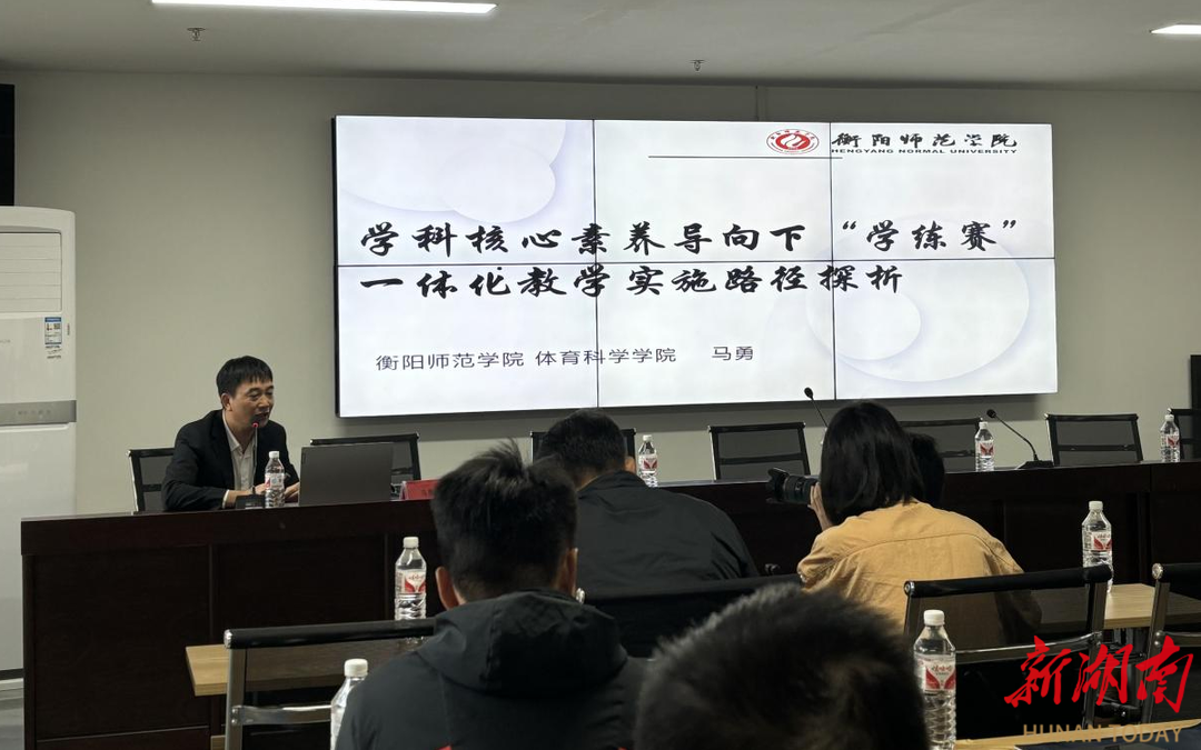 培训中,衡阳师范学院体育科学学院马勇教授作了题为《学科核心素养导向下体育与健康教育内容优化——基于“学练赛一体化”教学模式》的讲座,他从解读新课标课程理念入手,详细讲解了教会、勤练、常赛一体化教学实施的内涵、意义和路径,引领大家以“学练赛”一体化教学为抓手,把体育学科核心素养目标贯彻到体育教学中去。衡阳市第八中学体艺处主任、金牌教练、中小学高级教师、衡阳市优秀教师、衡阳市排球协会副主席黎永前作了题为《努力成就辉煌,拼搏创造奇迹——新课标背景下“学、练、赛、评”一体化体育教学模式经验分享》的讲座,他以衡阳市八中排球教学与训练为例,分享了学校体育“学练赛评一体化”教学经验,使参训人员受益良多。衡阳市教育科学研究院副院长、中学化学教研员、中小学正高级教师、衡阳市高中化学学科带头人、人民教育出版社课程教材研究所专家团队成员、湖南科技大学化学教育硕士实践型导师、湖南省中学化学教学研究专业委员会常务理事成志高作了题为《与中小学体育教师谈课题研究的途径与策略》的讲座,他深入浅出地讲解了课题研究的途径与策略,增强了参训人员对课题研究的兴趣,提升了大家的科研素养。