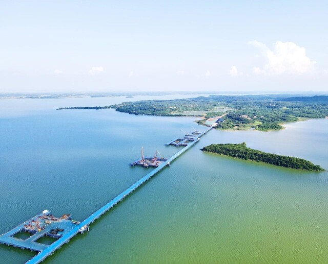 (中交中南局天子山大桥项目横跨梁子湖。企业供图)