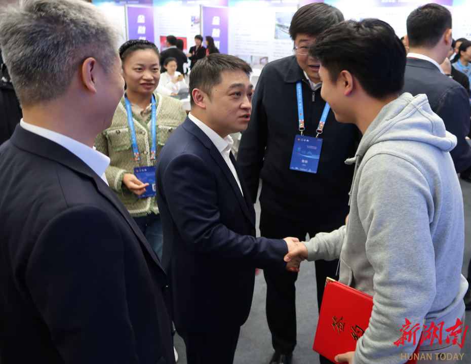 作为首个签约项目,胡盛在与湖南涉外经济学院项目负责人邵政熙同学握手并表示祝贺时,还勉励团队继续勇于探索、敢于创新,将项目做大做强,为国家的科技创新和经济发展贡献力量。