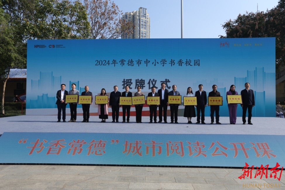 近年来,常德市教育局等部门结合本地实际,发起“常德市青少年学生读书行动”,积极推进青少年阅读教育。当天启动仪式上,常德市第二中学、武陵区紫菱小学、鼎城区永安小学、汉寿县南岳路小学、桃源县漳江小学、临澧县丁玲小学、石门县第四中学、澧县芙蓉学校、安乡县围庵小学、柳叶湖旅游度假区复基小学等十所学校因在书香校园建设方面的突出表现,被授予2024年常德市中小学“书香校园”称号。