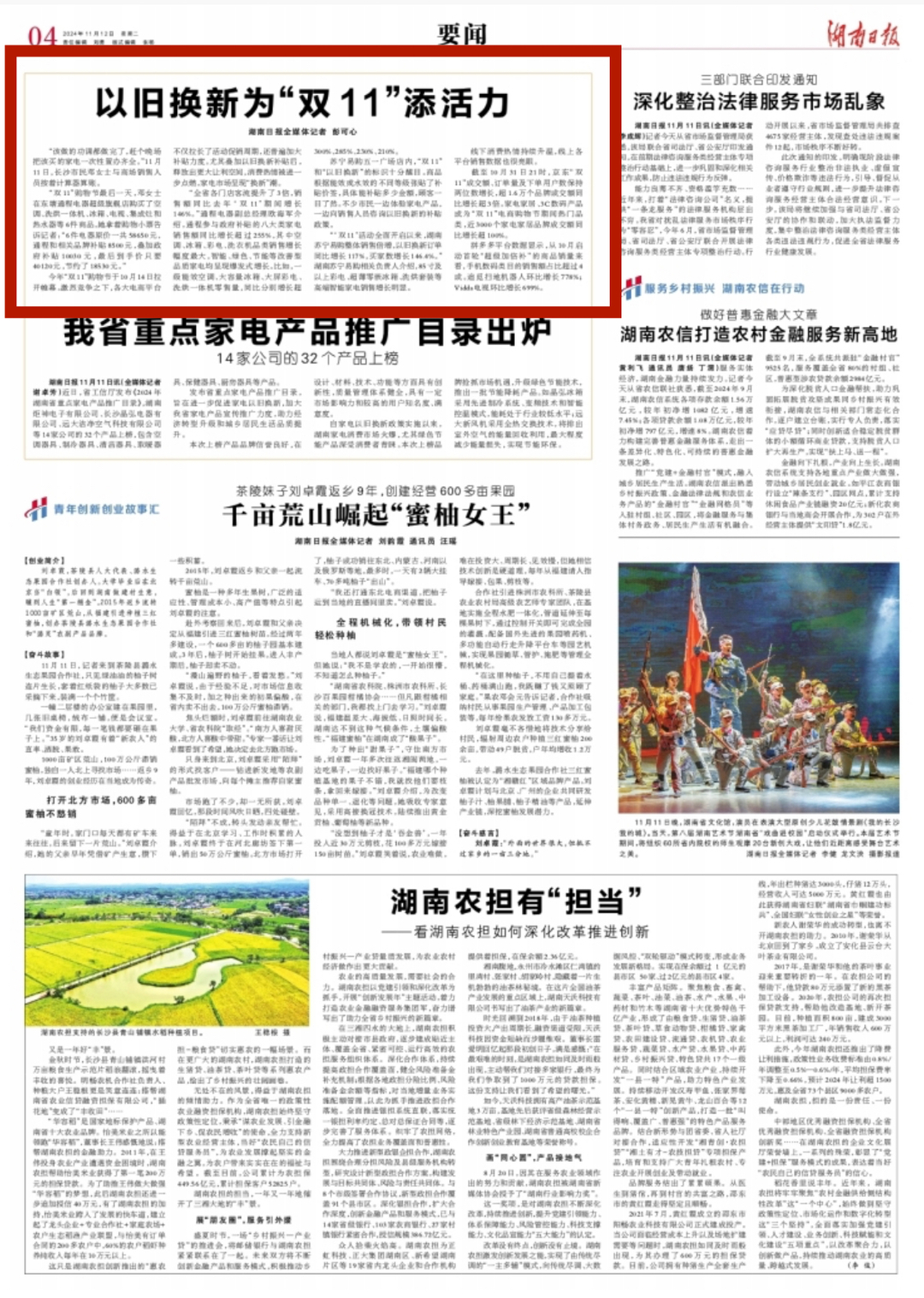 “全省各门店客流提升了3倍,销售额同比去年‘双十一’期间增长146%。”通程电器副总经理欧海军介绍,通程参与政府补贴的八大类家电销售额同比增长超过255%,其中空调、冰箱、彩电、洗衣机品类销售增长幅度最大,智能、绿色、节能等改善型品质家电均呈现爆发式增长。比如,一级能效空调、大容量冰箱、大屏彩电、洗烘一体机零售量,同比分别增长超300%、285%、230%、210%。