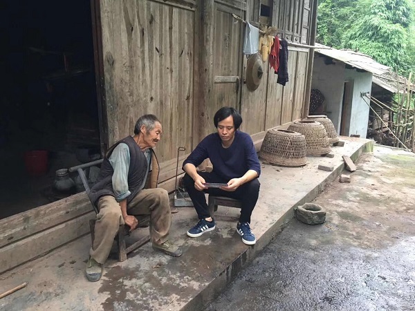 ▲2018年6月21日,赵涛在湘西泸溪县潭溪镇且己村走访结对帮扶对象向民友老人,为他解读国家扶贫政策