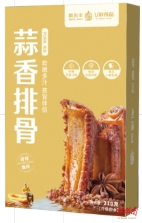 产品功能&特点:经典蒜香口味,精选优质排骨精选新五丰自有猪场的优质排骨,选取每根排骨肉最多的部位,肉很足,很满足。老卤慢熬,每根排骨一抿就脱骨,腌制4小时,根根都入味。