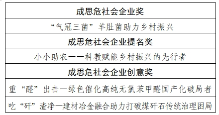 本届赛事还公布了第五届“成思危社会企业奖”,湖南项目团队分获“成思危社会企业奖”1名、“成思危社会企业提名奖”1名、“成思危社会企业创意奖”2名。