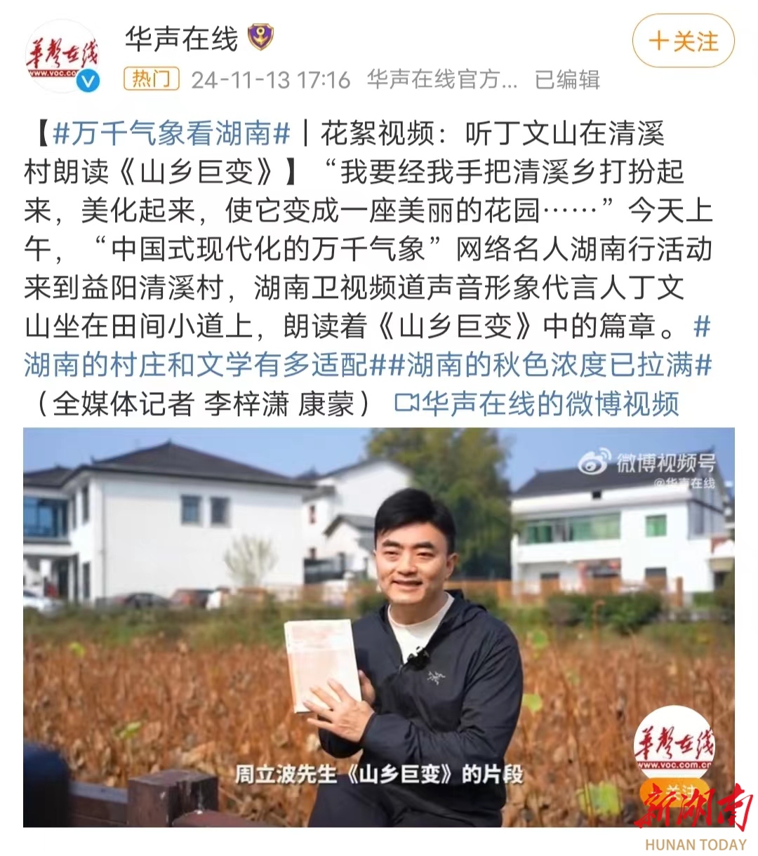 他们也在自己的社交平台上分享这一行程的见闻与感悟,希望有更多人感受到湖南的乡村之美,文学之美。
