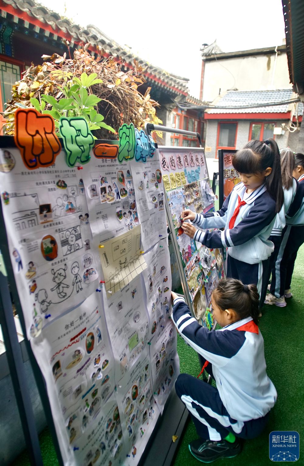 这是11月14日拍摄的北京市黑芝麻胡同小学设立的征求同学们课间活动意见和建议的展板。