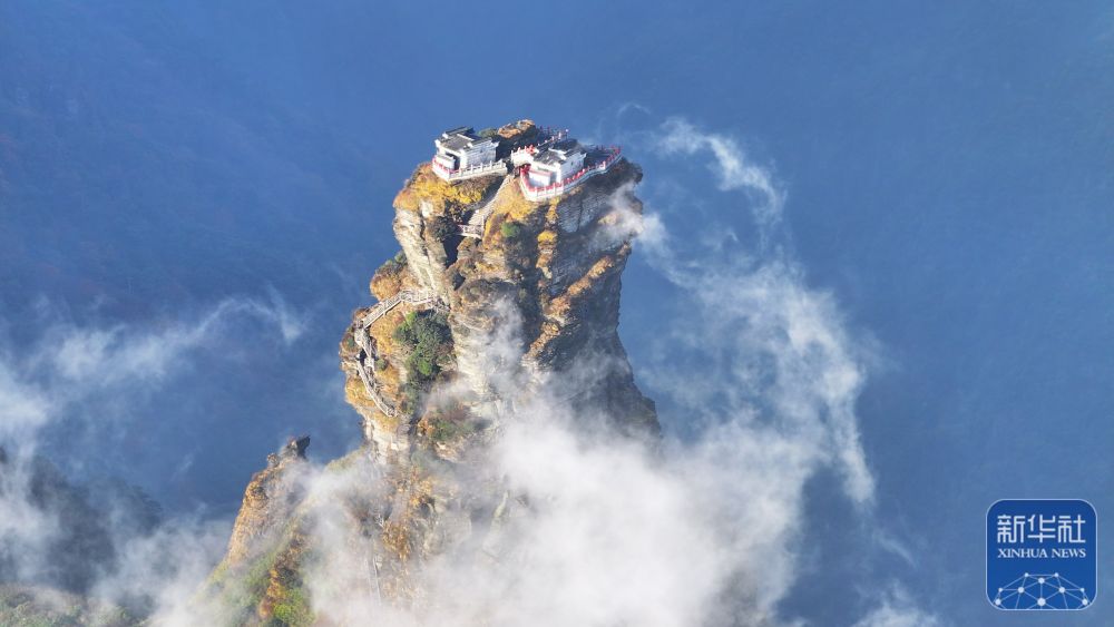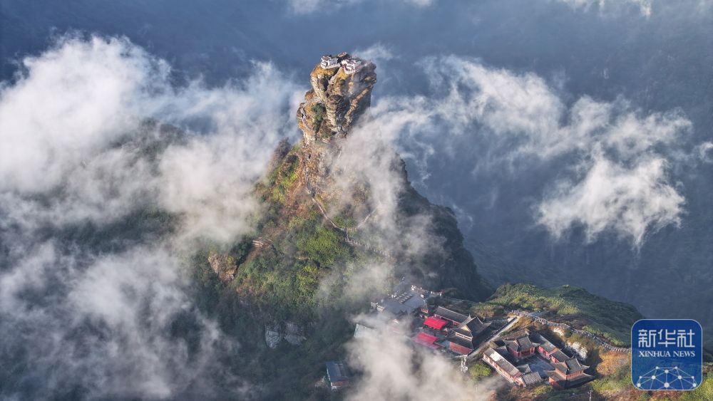 11月13日,在世界自然遗产地贵州梵净山景区拍摄的云雾景观(无人机照片)。新华社发(李鹤摄)