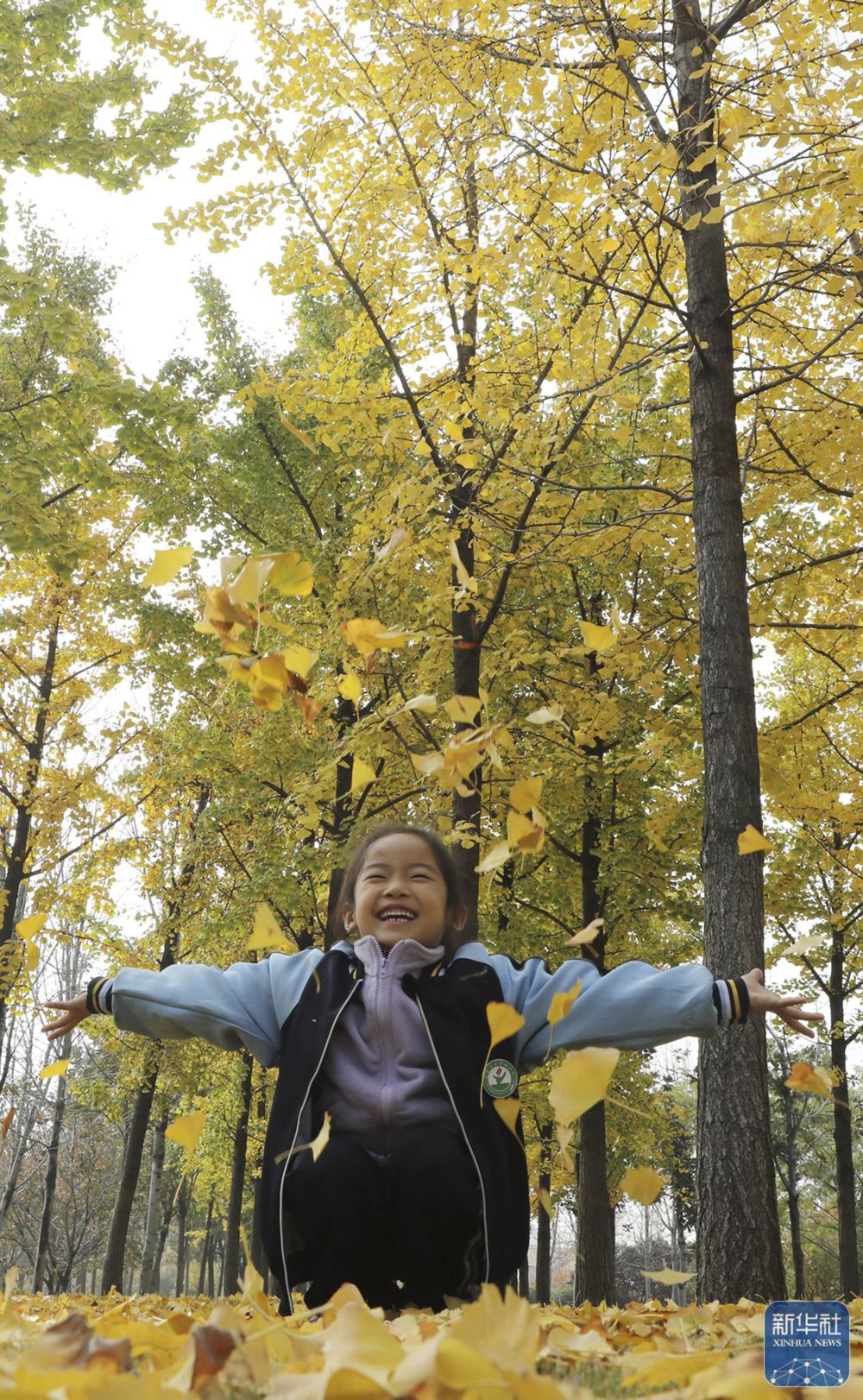11月14日,一名小朋友在河南省焦作市温县子夏公园银杏林里嬉戏玩耍。新华社发(徐宏星摄)